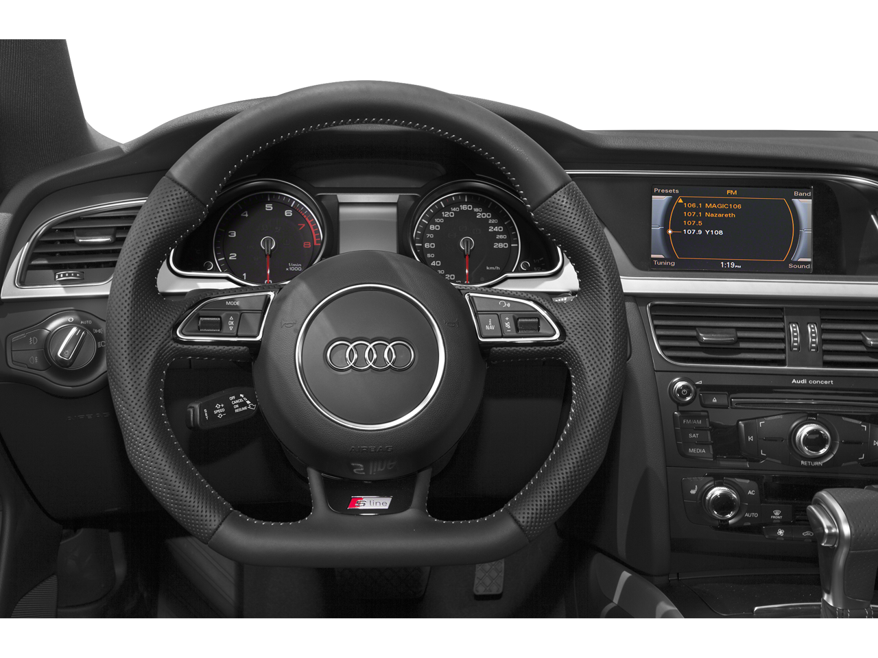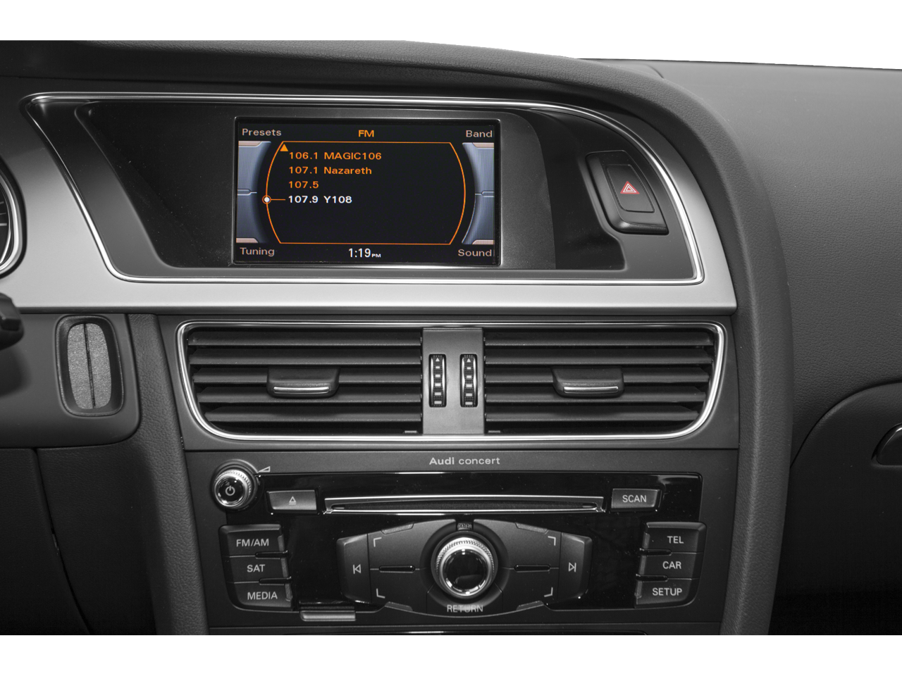 - Radio: Audi Concert System w/1CD Player -inc: DVD capability w/Audi MMI Navigation plus, MP3 capable, AM/FM radio, auxiliary input jack, SD card slot w/32GB capacity for MP3 files, speed-dependent volume control, Audi MMI radio plus system for controlling infotainment/climate/car setup w/6.5" color screen, Audi music interface w/iPOD integration includes one cable for iPod connection, Audi 6-channel DSP extended sound system w/10 speakers including subwoofer, 180w sounds system, Bluetooth® wireless technology preparation for mobile phone, HD Radio technology and SiriusXM satellite radio (90-day trial subscription)