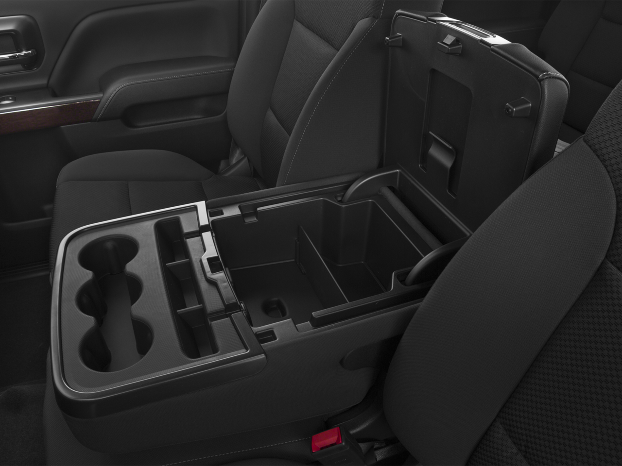 - Console, floor mounted, reconfigurable with moveable cup holders, cell phone storage, power cord management and hanging file holder capability