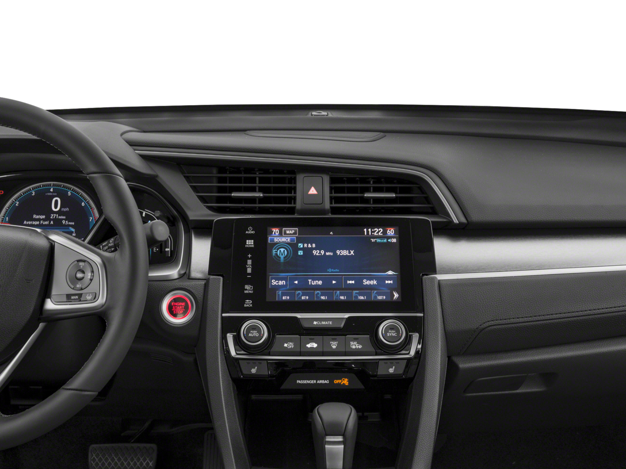 - Radio: 450-Watt AM/FM/HD/SiriusXM Audio System -inc: 9 speakers, subwoofer, 7-inch display w/high-resolution WVGA (800x480) electrostatic touch-screen and customizable feature settings, Honda Satellite-Linked Navigation System w/voice recognition, Honda HD digital traffic, turn-by-turn directions, compass and Song By Voice (SBV), Bluetooth® HandsFreeLink, Bluetooth® streaming audio, radio data system (RDS), speed-sensitive volume control (SVC), 1.5-amp USB smartphone/audio interface in front, 1.0-amp USB audio interface port in center console, HondaLink, Apple CarPlay integration, Android Auto integration, Pandora compatibility, SMS text message function, illuminated steering wheel-mounted audio controls and navigation controls and body-colored fin-type roof-mounted antenna