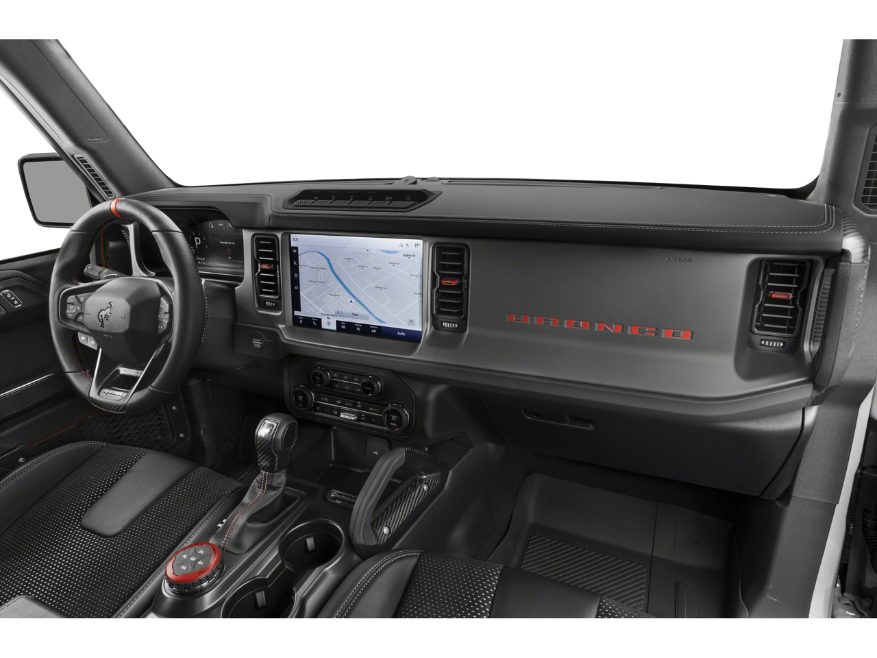 Elevate your driving experience with the Bronco Raptor's exceptional performance and premium amenities. The powerful 3.0L EcoBoost V6 engine, paired with a 10-Speed Automatic transmission and 4WD, delivers thrilling acceleration and uncompromising capability. Enjoy the convenience of Connected Navigation, keeping you on track and connected, while the premium B&O Sound System by Bang & Olufsen provides an immersive audio experience.