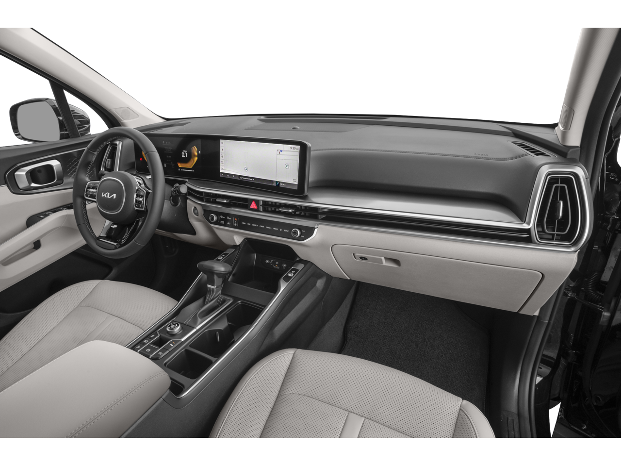 23/28 City/Highway MPG "3rd Row Seat", "Leather", "Navigation", "Bluetooth®", "Remote Keyless", "Power Seat", "USB Port", "Heated Seats", "Blind-spot Monitoring", "Lane Departure Warning", "Apple CarPlay and Android Audio", Sorento S, 2.5L I4 DGI DOHC 16V LEV3-SULEV30 191hp, AWD, Gravity Gray, Black Artificial Leather.