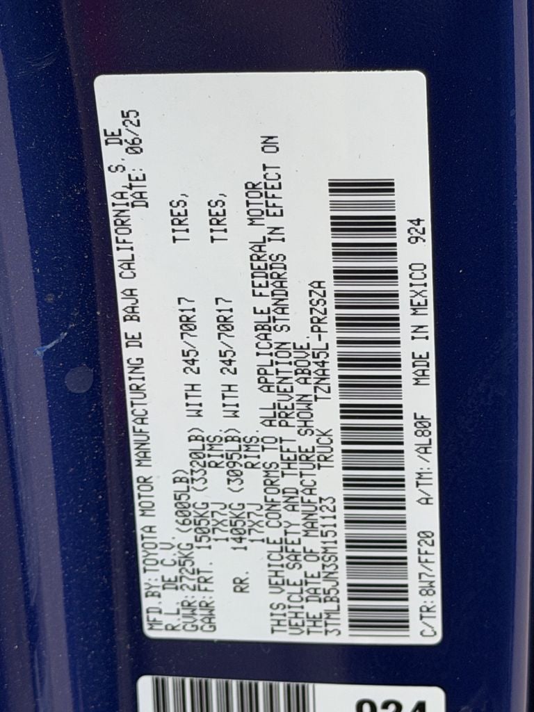 - Vehicle Name: Toyota Tacoma 4WD